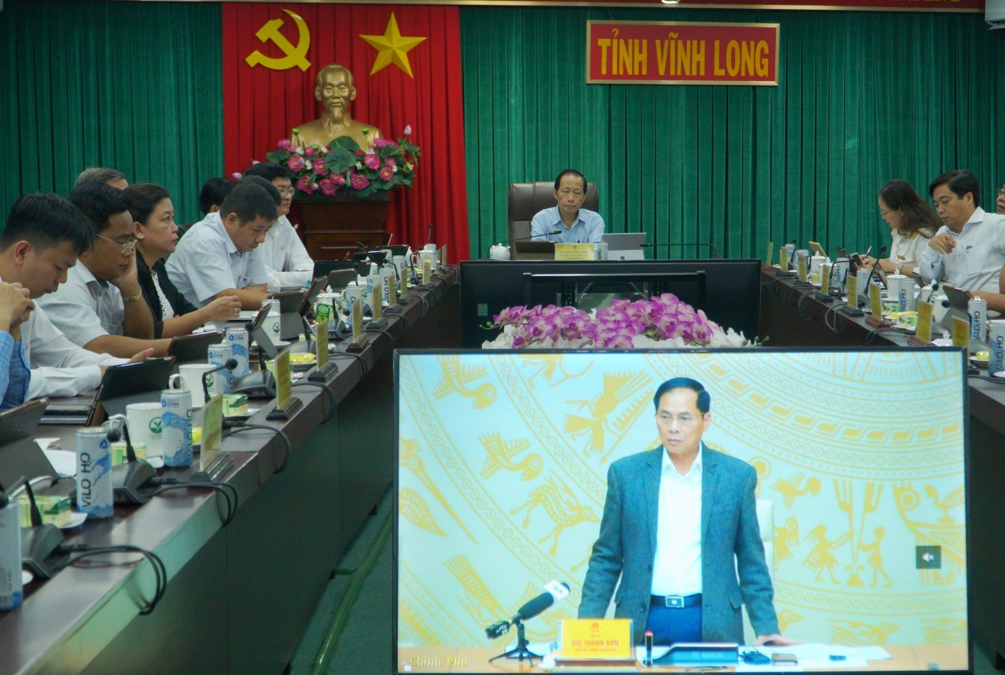 Tại điểm cầu UBND tỉnh Vĩnh Long, đồng chí Nguyễn Trúc Sơn - Ủy viên Ban Thường vụ Tỉnh ủy, Phó Chủ tịch UBND tỉnh, Trưởng BCĐ 389 tỉnh cùng lãnh đạo các sở, ngành tỉnh tham dự.