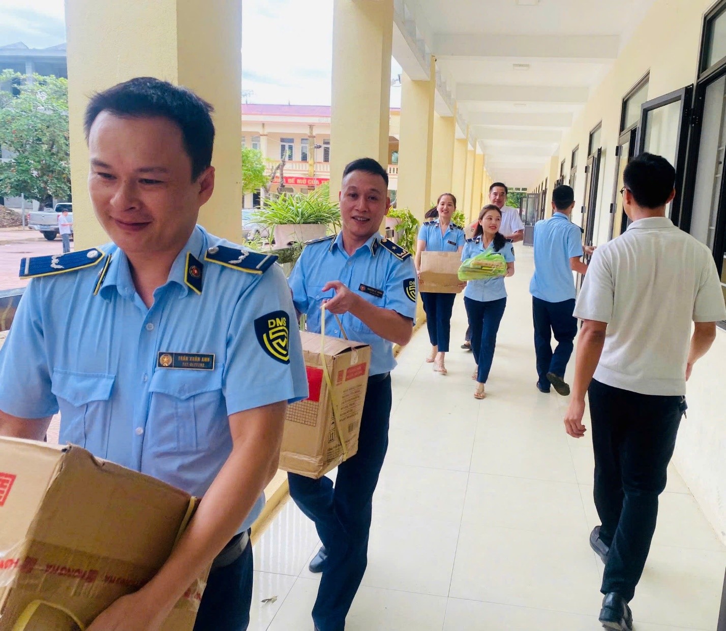 Hình ảnh: Các Công chức QLTT cùng nhà trường vận chuyển quà thiện nguyện vào nơi tập kết